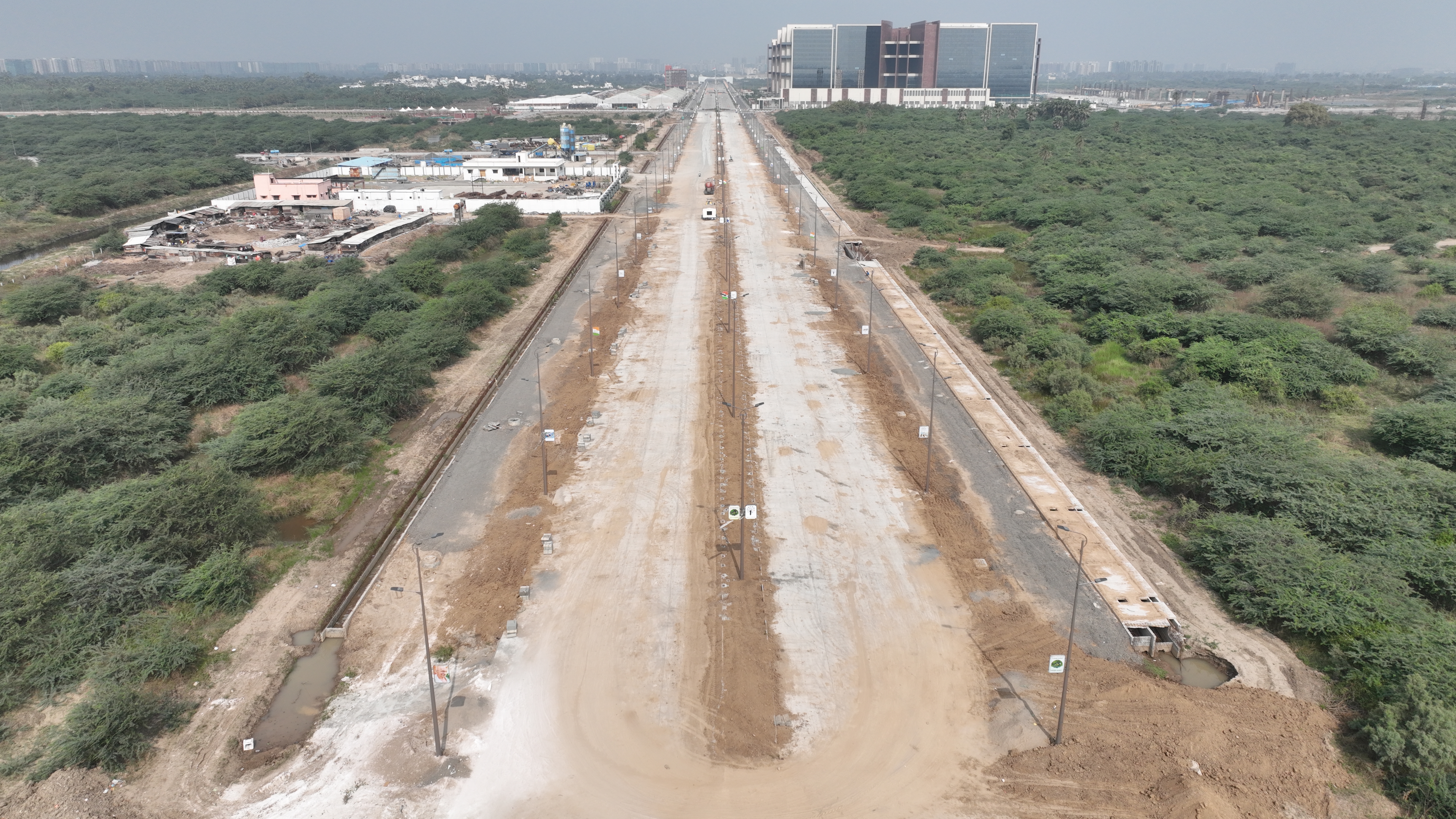Expansion of 12km ring road with concrete surface and safety features.
